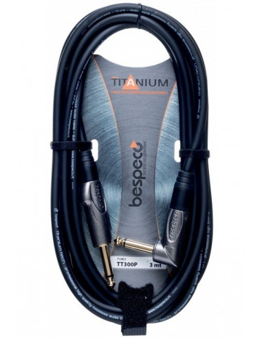 Bespeco Titanium es una gama de cables de alta calidad para instrumentos y micrófonos. No sólo impresionan por sus perfectas características de sonido, sino también por su diseño único y elegante. Las ventajas de los cables Titanium Tech incluyen el chapado completo de los conectores con oro de 24 quilates, el refuerzo con resina de las conexiones internas, un diámetro de cable de 7 milímetros, una cubierta fuerte y duradera o un apantallamiento eficaz que cubre el 94% del conductor.