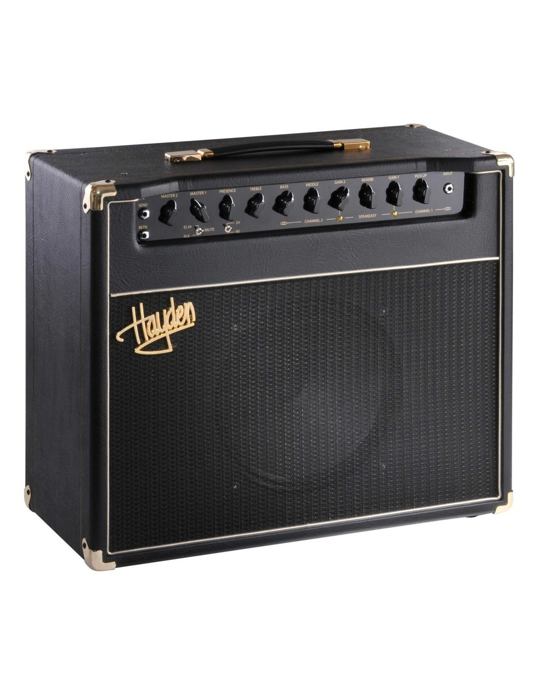 dos canales con dos rutas de señal separadas delante de una etapa de configuración de tono compartida que proporciona control sobre la presencia, los graves, los medios y los agudos. El canal 1 presenta una reverberación de resorte impulsada por válvulas y un