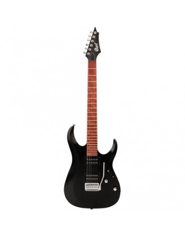 Guitarra de diseño moderno con doble cutaway. Cuerpo de álamo. Mástil Bolt-on de arce. Diapasón de palorrosa. 24 trastes. Escala 25.5'. Pastillas Powersound PSEG4-1F & PSEG4-1R . Configuración H-H. Clavijeros Diecasting. Puente semi-flotante. Herrajes cromados. Color Open Pore Black Metallick (Negro mate metalizado)